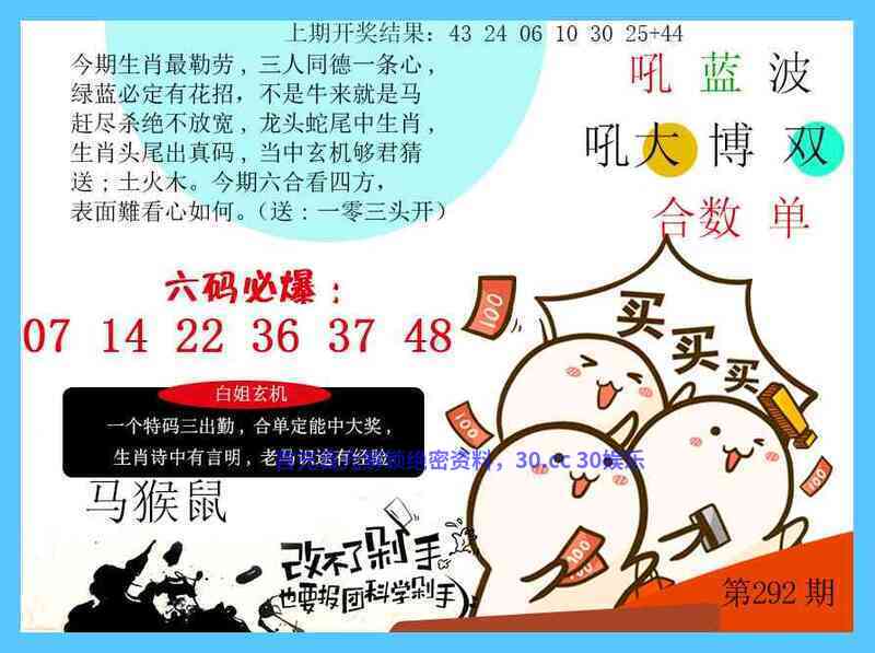 287期:三门中特【二三】开:猴34中